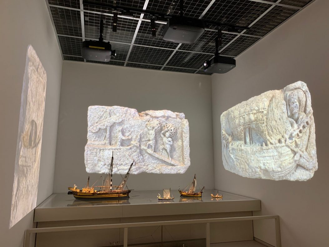 The Videlio teams were interviewed as part of a competitive dialogue with the client and the scenographer to define the appropriate systems. A great deal of upstream research work was needed in order to integrate the multimedia and screens in the transcoder; also, to identify the device that best adapts to space constraints, and give the feeling of reality to this lapidary wall. It is equipped with several digital media devices. In fact, at two points on the wall, two groups of eight screens are integrated into the façade, but leaving an empty cell in their center to accommodate a block.