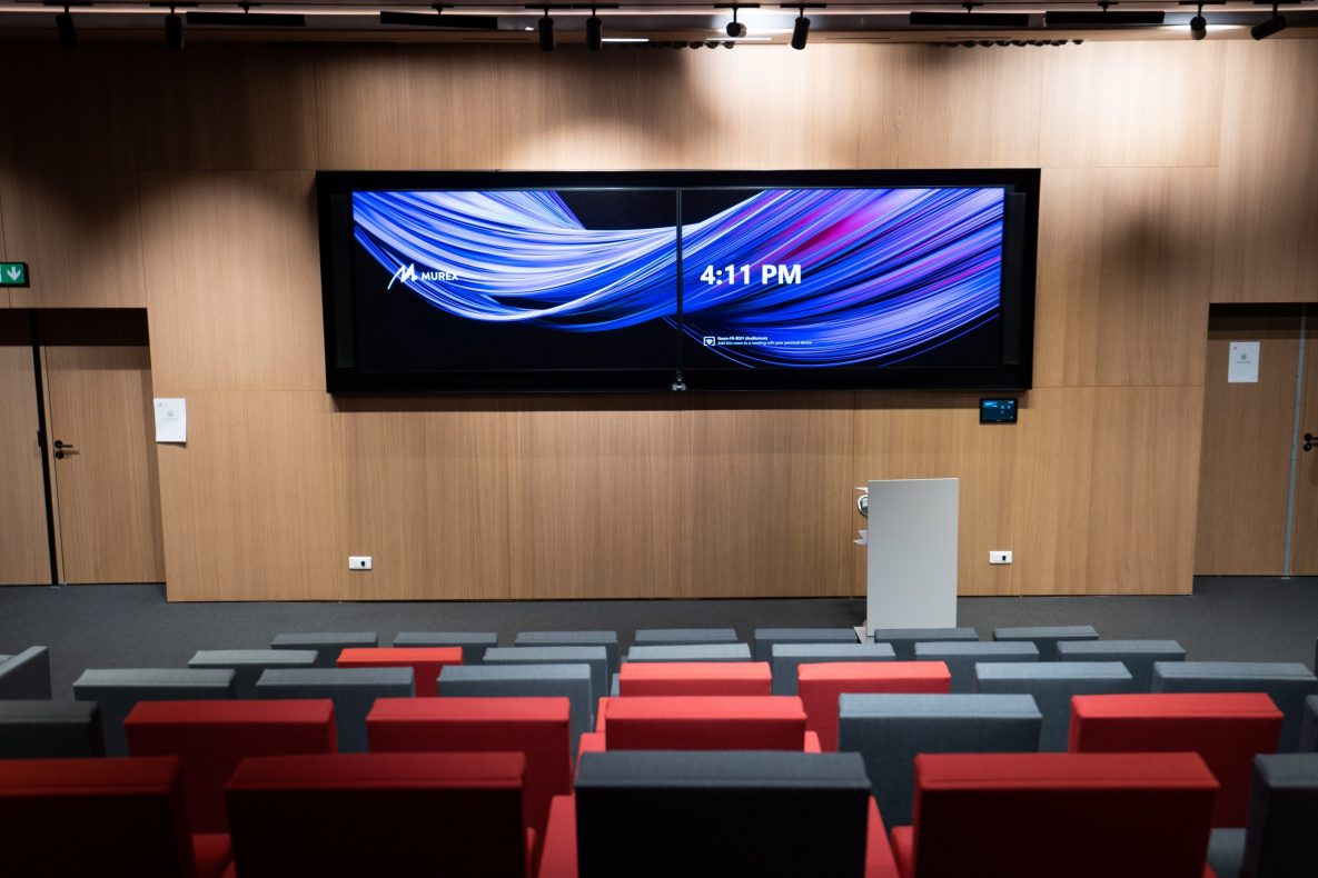 MUREX souhaitait mettre en avant l’innovation et la connexion entre les différents départements. Les défis étant d’implémenter une technologie simple et intuitive pour les utilisateurs (sans besoin de mode d’emploi), mais aussi de réaliser ce chantier en période de pandémie mondiale en devant gérer stockage du matériel reçu non terminé par exemple.