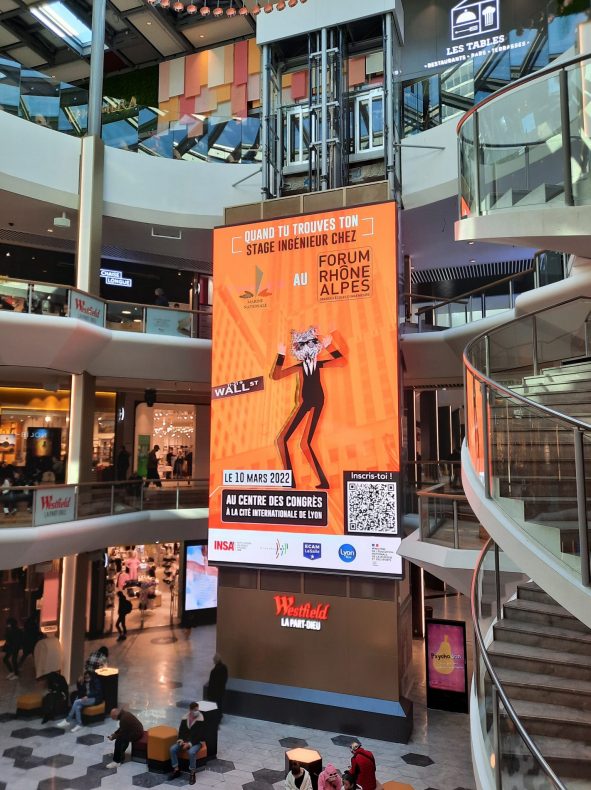 Ce dispositif vient compléter un parc d’écran LED où les problématiques restent les mêmes : installer des équipements performants et assurer une continuité de service 24/7 pour générer du revenu au travers de la diffusion de contenu. A ce jour, la maintenance de ces écrans est assurée dans ces différents centres commerciaux : Les 4 temps, Parvis La Défense, Carré Sénart, Euralille, Parly 2, Les Halles et Lyon Part Dieu.